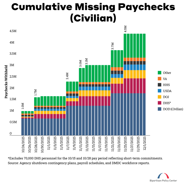 Many or all companies we feature compensate us. Compensation and editorial research influence how products appear on a page. Personal Finance When Safety Nets Fray: $411 Million in Shutdown Relief and the Future of Food Assistance Updated Nov 07, 2025 8-min read Written by Ben Luthi Written by Ben Luthi Expertise: Student loans, personal loans, mortgage loans, investing, banking, budgeting, debt, tax planning Ben Luthi is a Salt Lake City-based freelance writer who specializes in a variety of personal finance and travel topics. He worked in banking, auto financing, insurance, and financial planning before becoming a full-time writer. Learn more about Ben Luthi Edited by Kristen Barrett, MAT Edited by Kristen Barrett, MAT Expertise: Student loans, mortgages, personal loans, home equity, investing Kristen Barrett is a managing editor at LendEDU. She lives in Cincinnati, Ohio, with her wife and their three senior rescue dogs. She has edited and written personal finance content since 2015. Learn more about Kristen Barrett, MAT USAA, a member-owned financial institution serving military families, has delivered $411 million in relief to federal workers in just 35 days of the current government shutdown.$418 million as of the close of business on November 5, 2025 More than 120,000 federal employees have taken advantage of special zero-interest loans (totaling $384 million) just to cover basic expenses while their paychecks remain frozen, as well as loan and credit payment extensions and waived overdraft fees.122,000 as of the close of business on November 5, 2025$391 million as of the close of business on November 5, 2025 The government has been shut down for 36 days and counting. It’s now the longest in U.S. history. This staggering figure tells a story about what happens when safety nets fail. But it’s not just about the shutdown. Recent changes to the Supplemental Nutrition Assistance Program (SNAP) suggest we’re dismantling the very systems designed to catch people when they fall, and the timing couldn’t be worse. Table of Contents Shutdown’s immediate toll Human cost A preview of what’s to come? SNAP funding changes (even after the shutdown ends) Recession problem Stricter work requirements Fewer waivers 2 sides of the same crisis The shutdown’s immediate toll Since October 1, approximately 1.4 million federal workers have missed paychecks. They received their last partial paychecks on October 10 and then missed their first full paycheck on October 24. While Congress has guaranteed back pay once agencies reopen, that doesn’t help families facing bills today. Banks and credit unions have stepped in where the government left off. USAA’s loans, which offer up to $6,000 per worker, are designed as paycheck replacements. The loans are interest-free and fee-free, giving workers 90 days to repay once issued. Source Navy Federal Credit Union offers a similar program, and during the 2018 to 2019 shutdown that lasted 35 days, it issued $53 million in loans to 32,000 members. This time around, enrollment has been “significantly higher,” according to an assistant vice president at the lender. Redwood Credit Union has issued roughly $160,000 to 60 recipients. Are SNAP Benefits Ending? How the Government Shutdown Affects SNAP EBT and 42 Million Americans Human cost of the shutdown The human cost behind these numbers is significant. One San Antonio woman whose husband works for the Department of Defense told CBS News her family took out a $3,200 loan to cover bills. One of their five children has special needs and underwent spinal fusion surgery earlier this year. Medical bills from the procedure are now coming due at exactly the wrong time. Another family in San Diego is using their loan to cover therapy sessions for their son with autism and their daughter’s braces. The mother is delaying her own necessary dental work until the shutdown ends. A preview of what’s to come? The shutdown reveals what happens when financial support disappears suddenly. But while banks have offered a temporary solution for federal workers, upcoming changes to SNAP, the nation’s largest nutrition assistance program, suggest millions more Americans could face similar crises without emergency backup. The One Big Beautiful Bill Act (OBBBA), signed into law earlier this year, fundamentally restructures SNAP in ways that will severely limit its ability to respond to economic downturns. And unlike zero-interest loans from sympathetic banks, there’s no easy replacement for food assistance that helps 42 million Americans afford groceries. SNAP funding changes (even after the shutdown ends) For more than 50 years, SNAP benefits have been fully funded by the federal government. Starting in October 2027, that changes. Under OBBBA, states will pay a portion of SNAP benefits based on their payment error rates, a measure of how accurately they determine eligibility. States with error rates below 6% pay nothing. As error rates climb, so does the state’s share, reaching 15% of benefits for states with error rates above 13.32%. Only eight states had error rates below 6% in fiscal year 2024, and nine states and Washington, D.C., exceeded 13.32%. Error rates fluctuate frequently; 47 states have spanned at least two different cost-sharing tiers since 2017. Source The Congressional Budget Office estimates this cost shift will cause some states to drop out of SNAP entirely. The current shutdown offers a preview of how fragile SNAP funding has become. On November 1, the U.S. Department of Agriculture (USDA) froze SNAP benefits for the first time in the program’s 60-year history, citing the government shutdown. Federal judges ordered the administration to use $4.6 billion in contingency funds, but that money only covers half of November’s benefits for 42 million recipients. Agriculture Secretary Brooke Rollins said it will take several weeks to distribute even these partial payments, and officials have warned it c